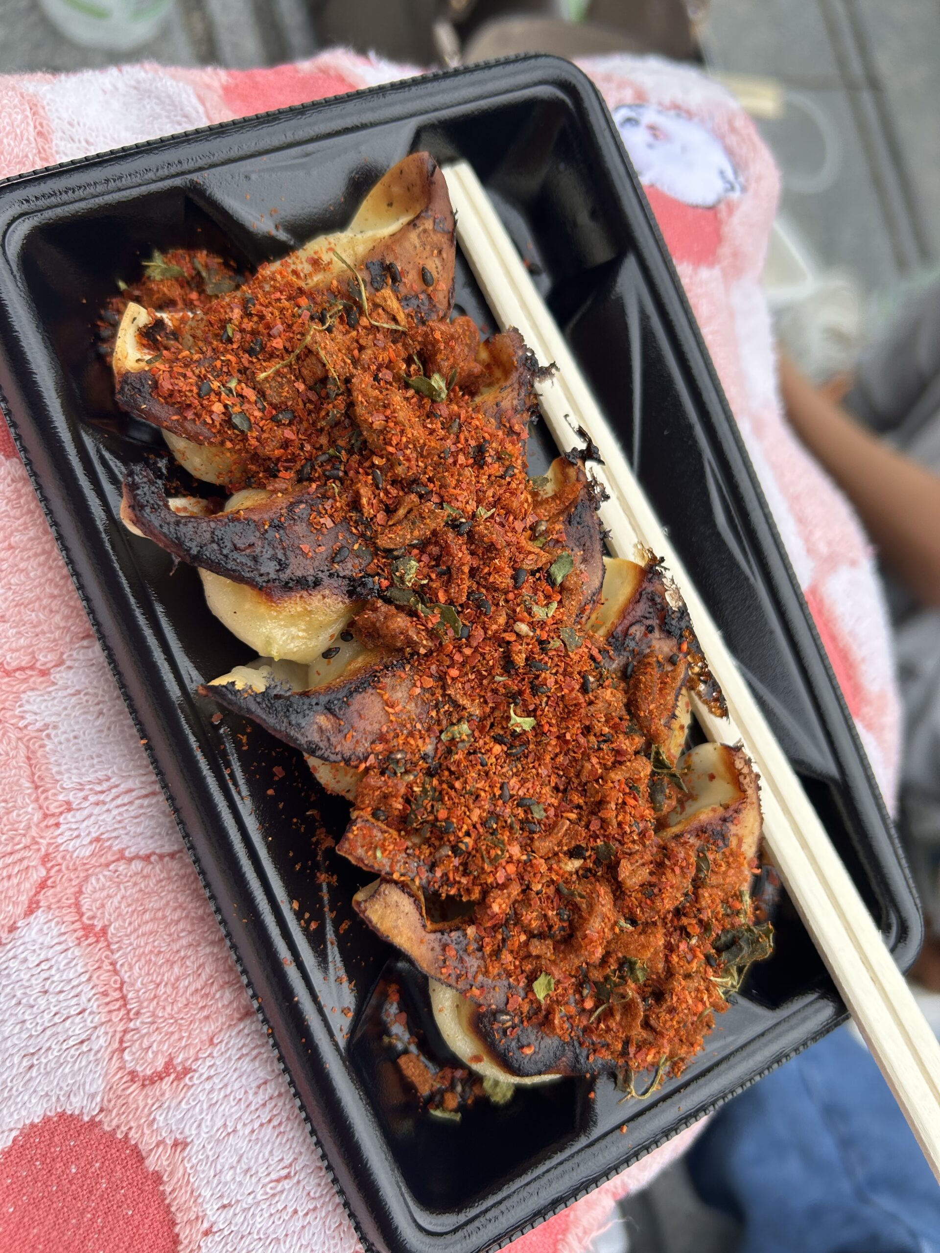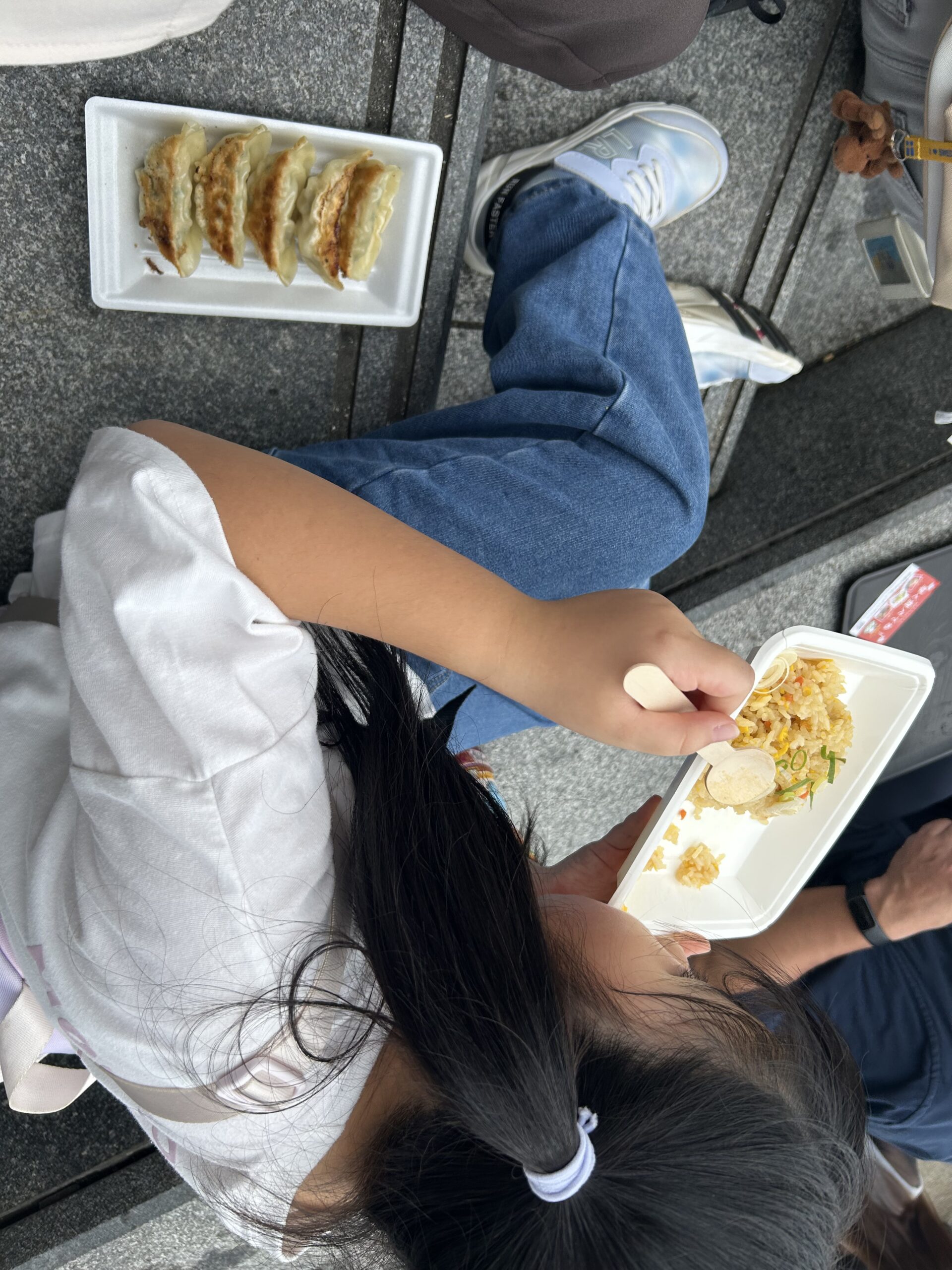 辛いやつー、食べたかった大葉のやつー、炒飯食べてる娘っちの順番です😂ノーマルの餃子も食べたので、4皿と炒飯かな?けっこう食べました!人もいっぱいしてて、皆お酒飲みながら餃子パーティーでしたよー!とよねぇは仕方なくノンアルで参戦でした😞たまにはこういうイベントも良いな〜って思ったけど、やっぱちょっとだけ人混み苦手〜😇娘っちは、疲れたぁと言いつつ結構しっかり歩いて着いてきてくれました🥰えらい〜!
