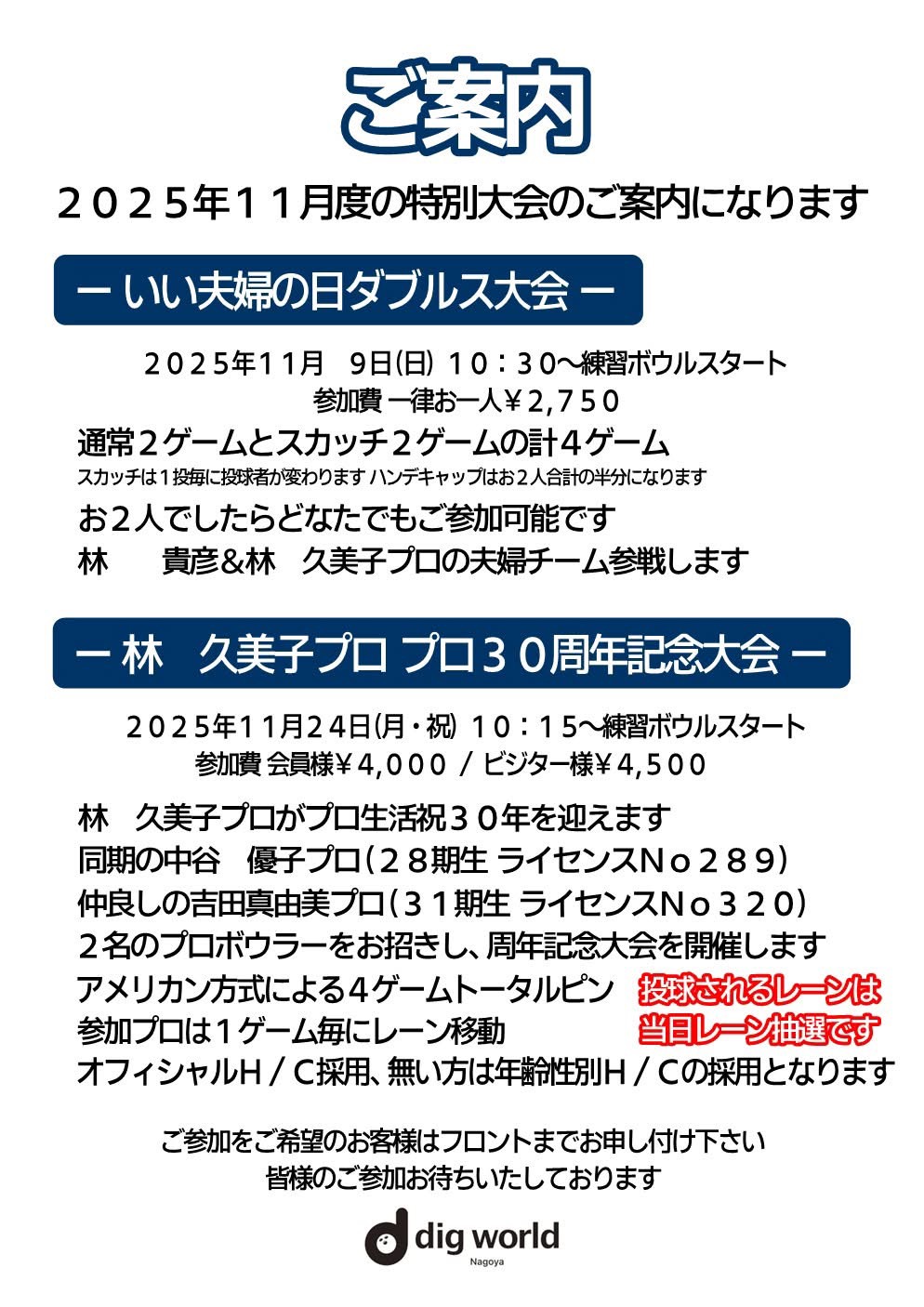 2025年11月「大会/教室(レッスン)/リーグ」日程表