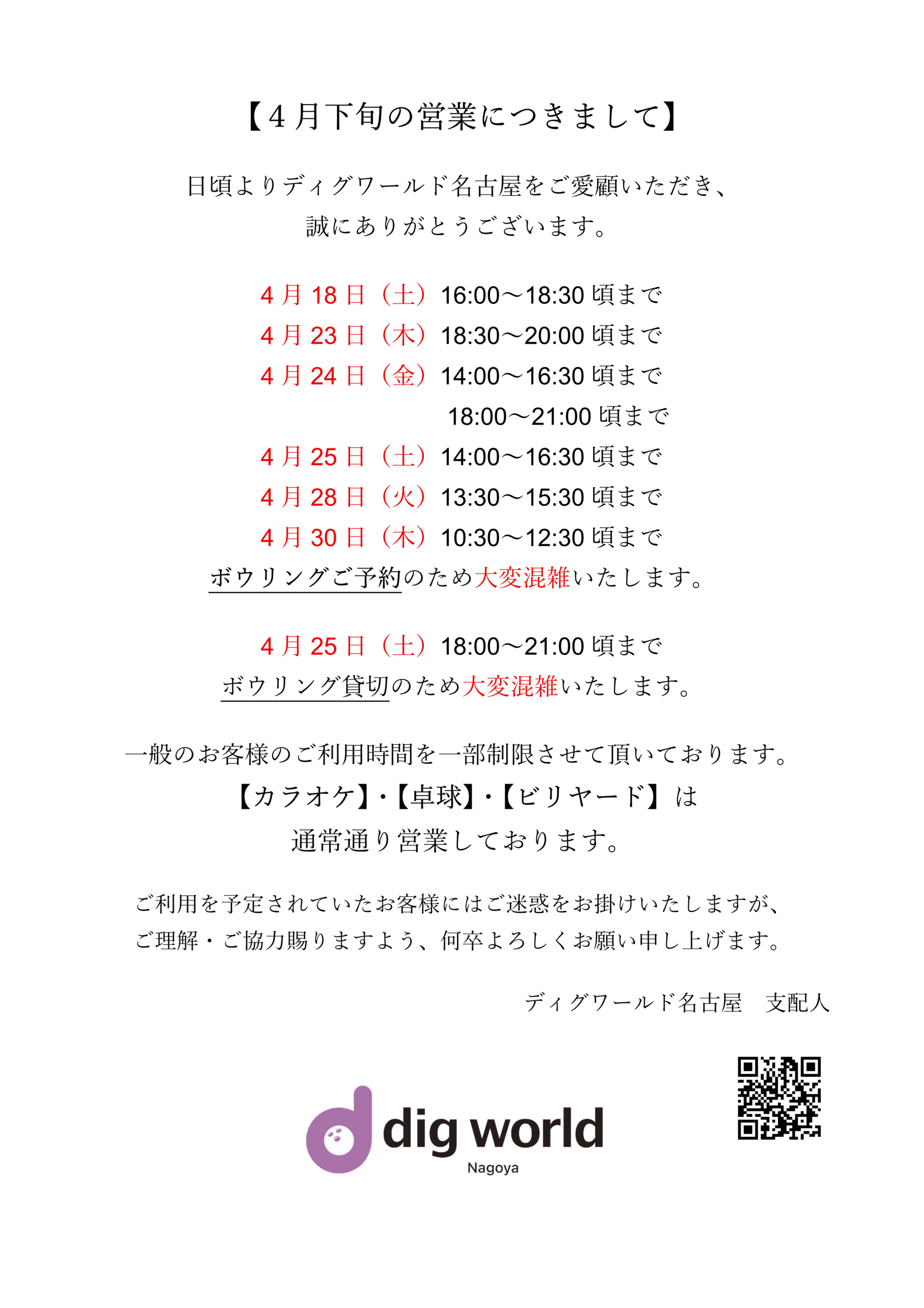 2026/4/16~2026/4/30ドリラー・プロボウラー出勤日