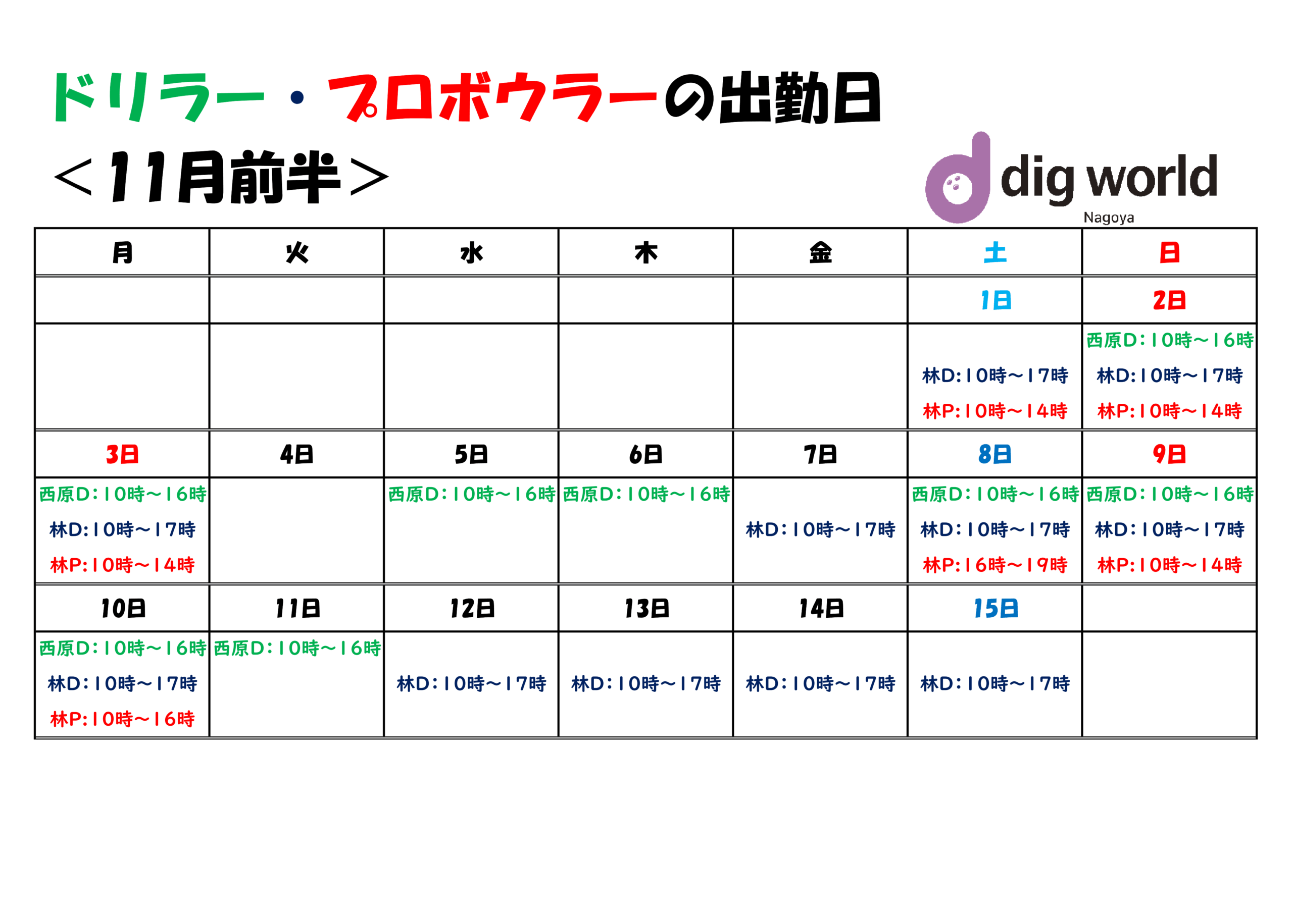 10月16日〜10月31日 ドリラー/プロボウラー出勤日