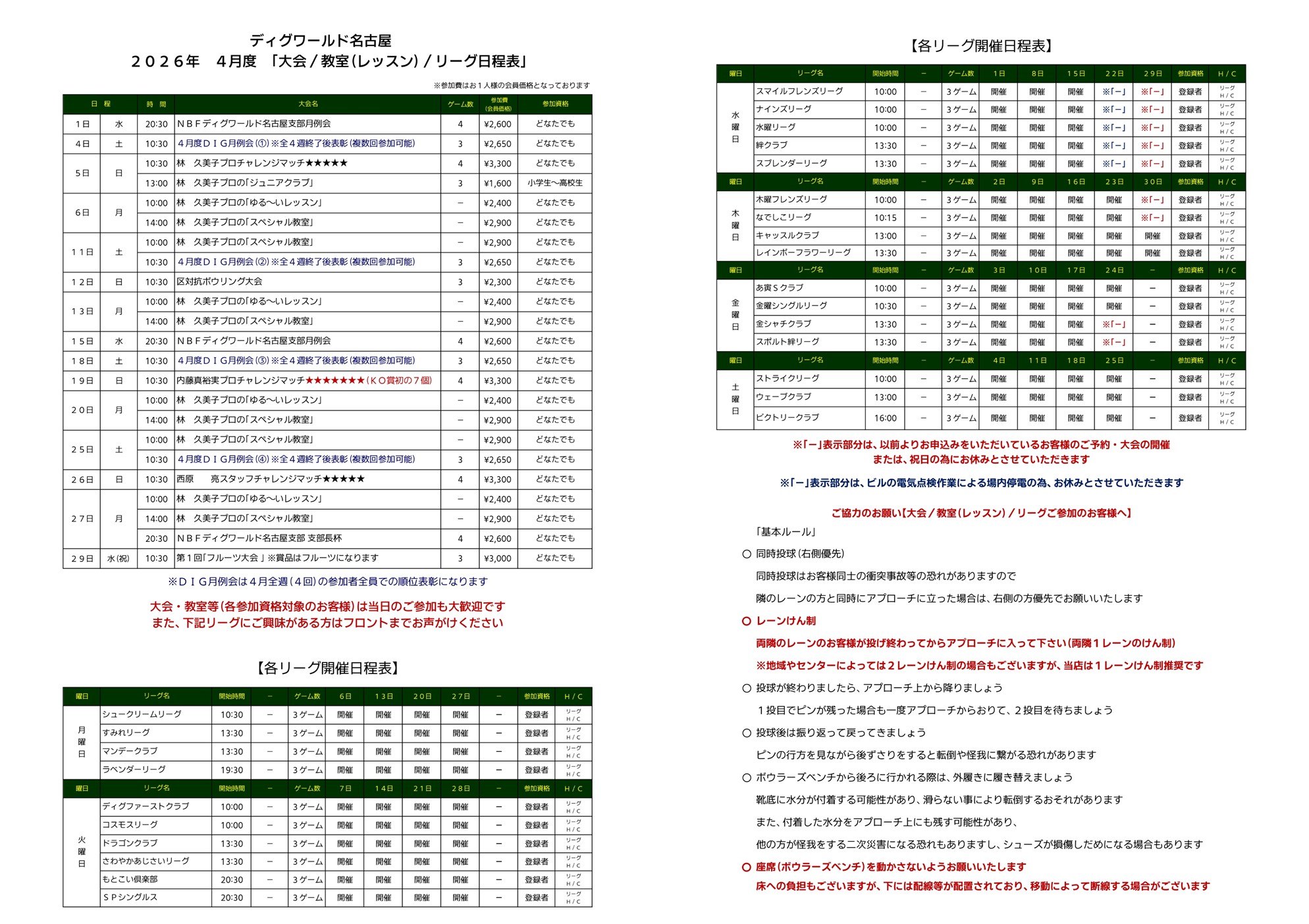 2026/4/1~2026/4/15ドリラー・プロボウラー出勤日