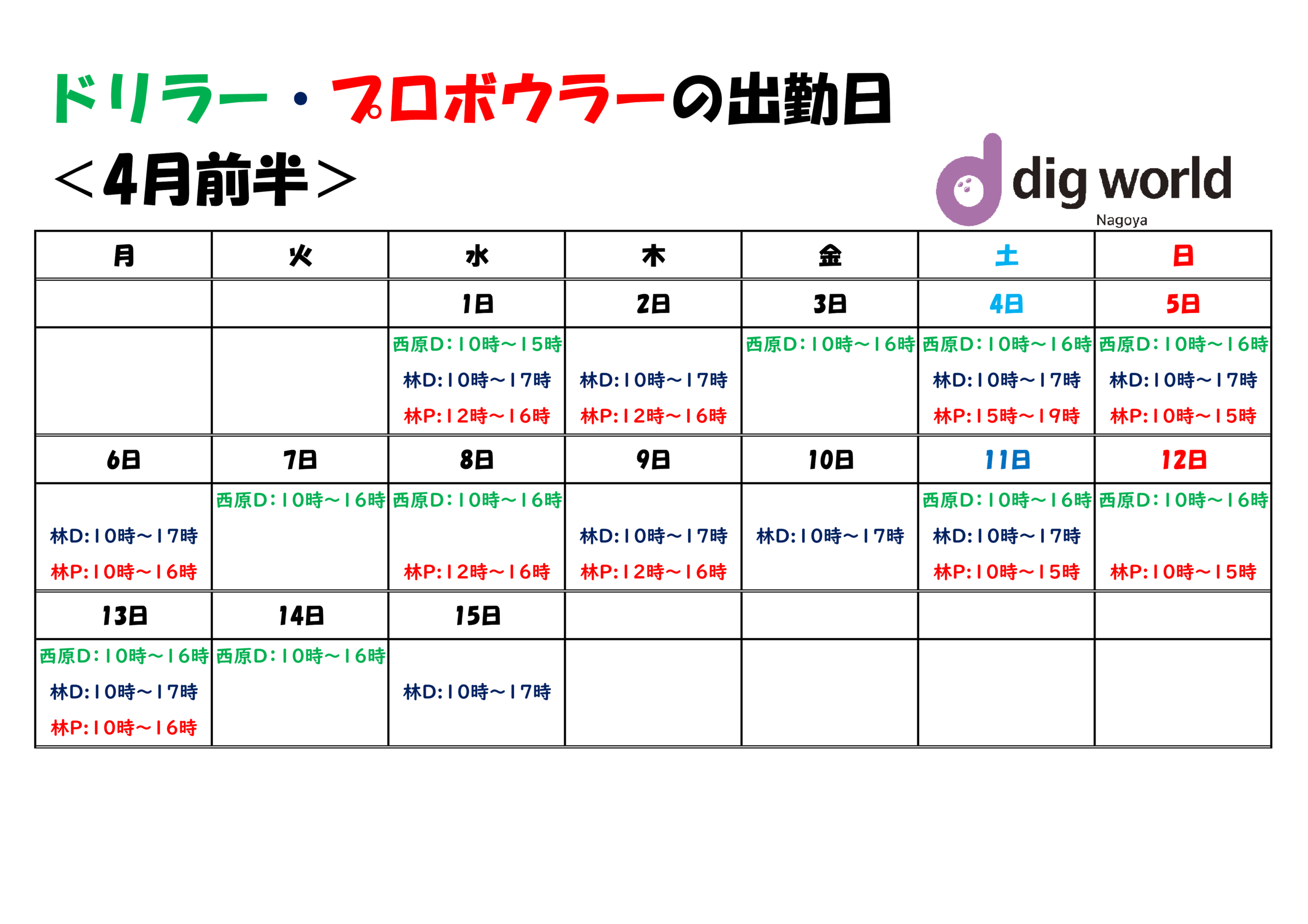 2026年4月「大会/教室(レッスン)/リーグ」日程表